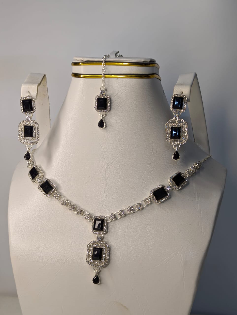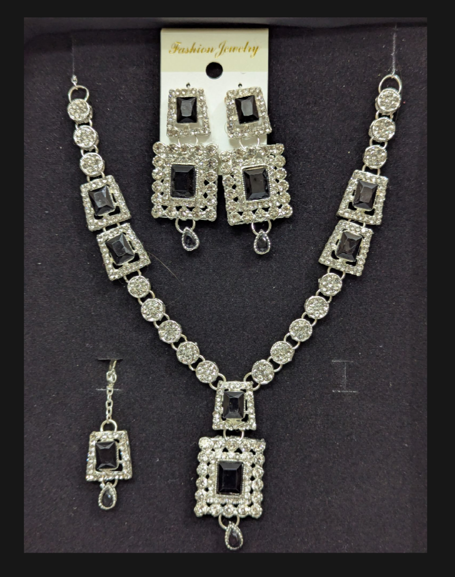 4 Pcs Luxury Silver Necklace Set with Earrings and bindi