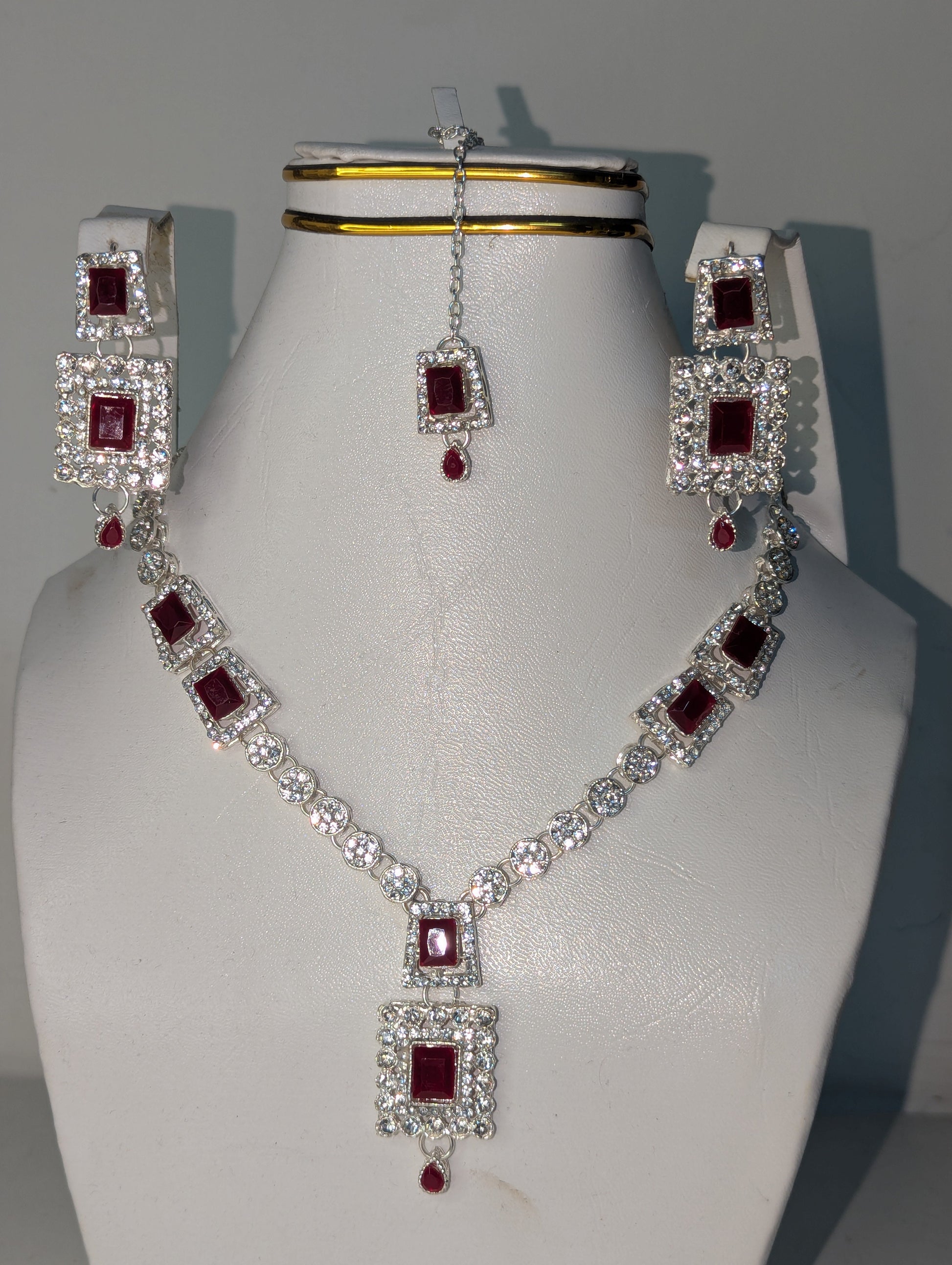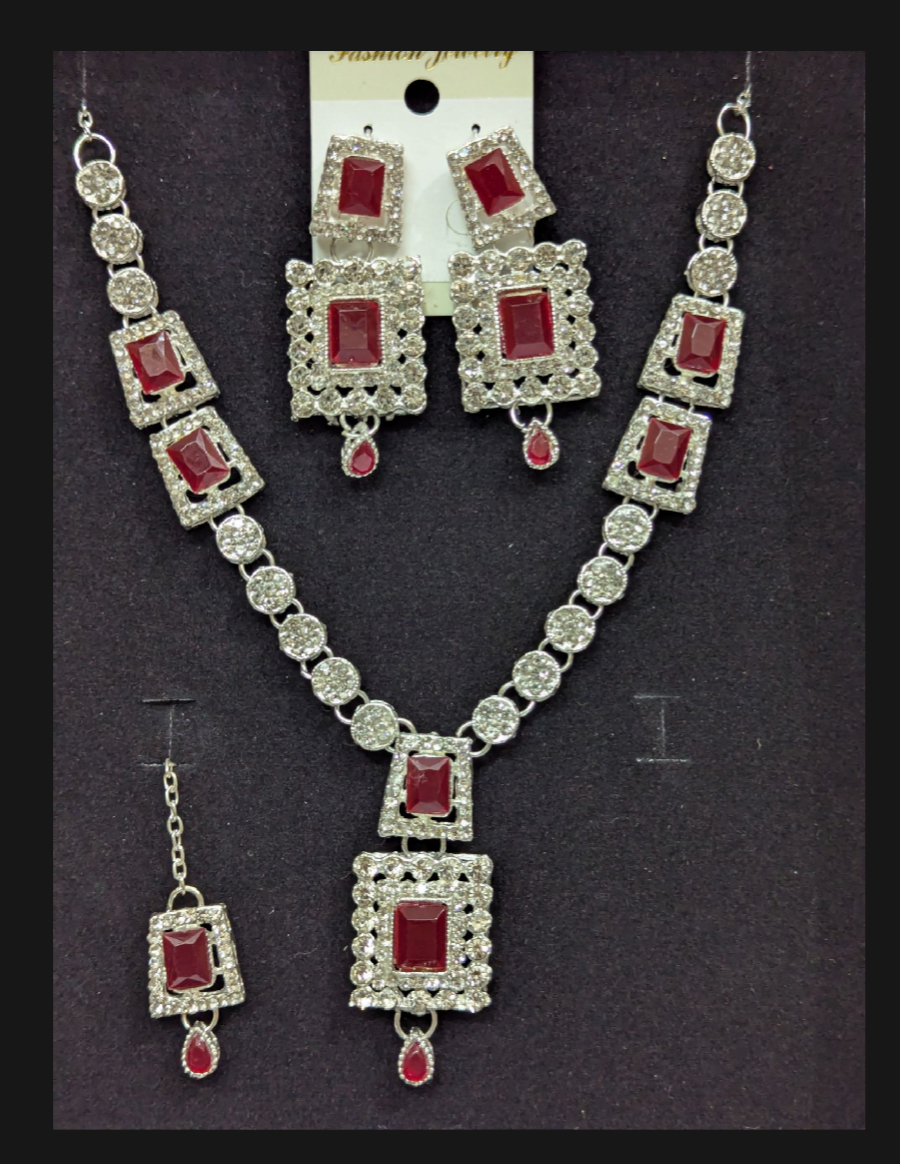 Luxury Maroon Necklace Set with Earrings and bindi