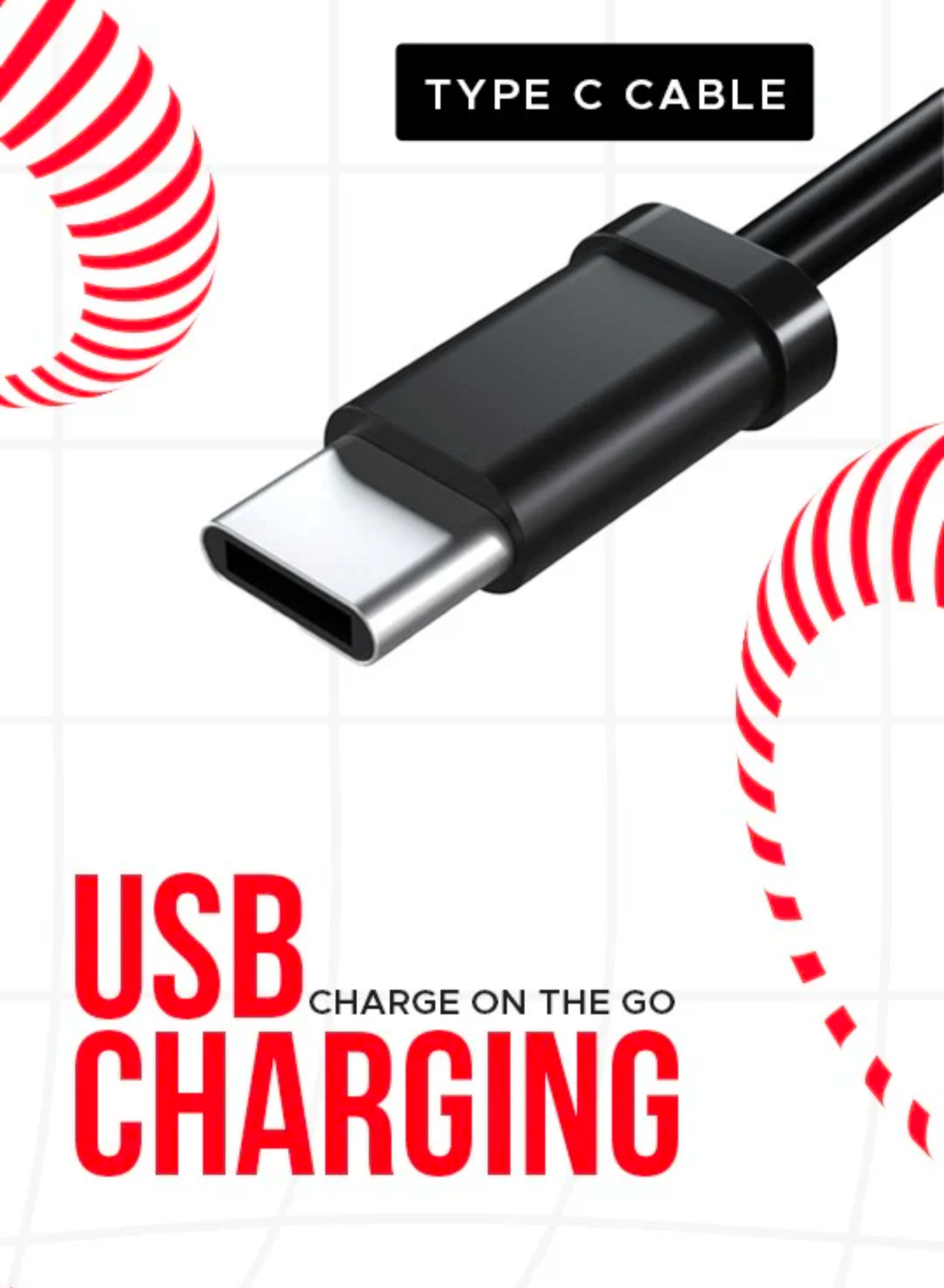 - Type-C Fast Charging – Works with power banks, laptops & adapters