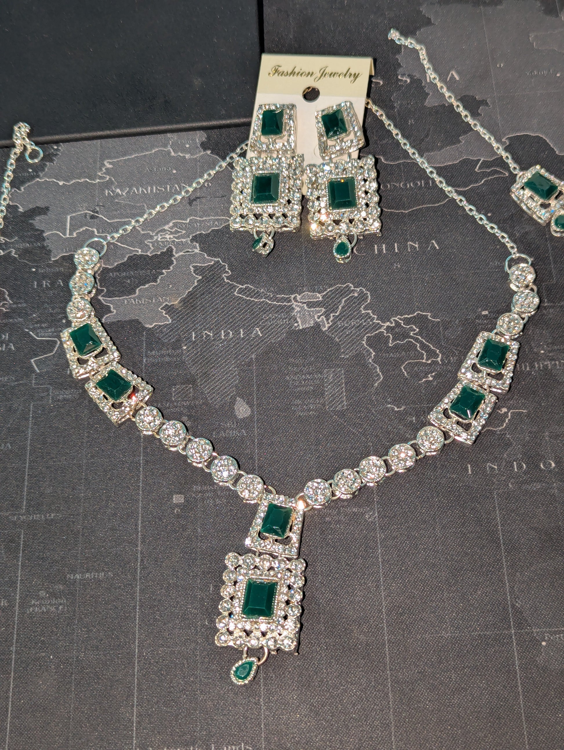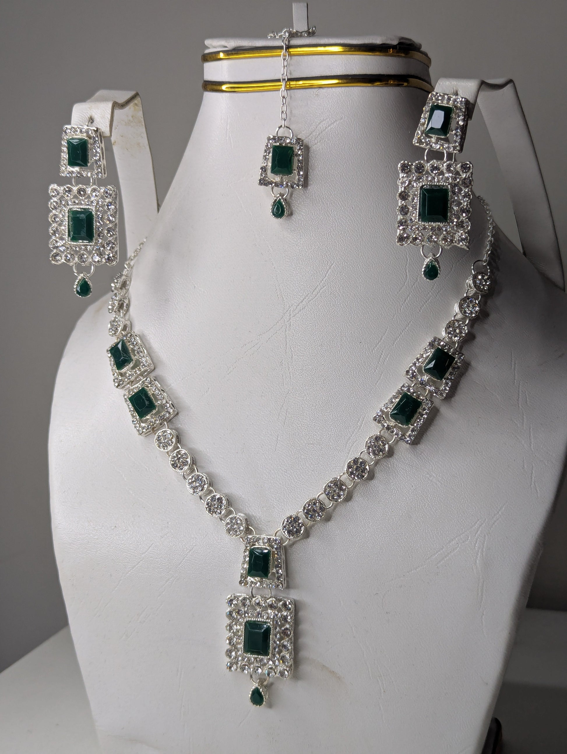 Luxury Green Necklace Set with Earrings & bindi